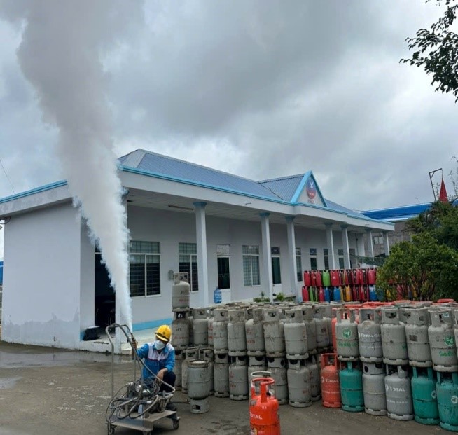 Việc tiêu hủy LPG chai diễn ra từ ngày 21 đến ngày 29/10/2025, nhân viên kỹ thuật sử dụng thiết bị chuyên dùng để lấy nước LPG trong chai ra khỏi chai LPG; lấy Val vặn trên cổ chai LPG sau đó hủy chai LPG.